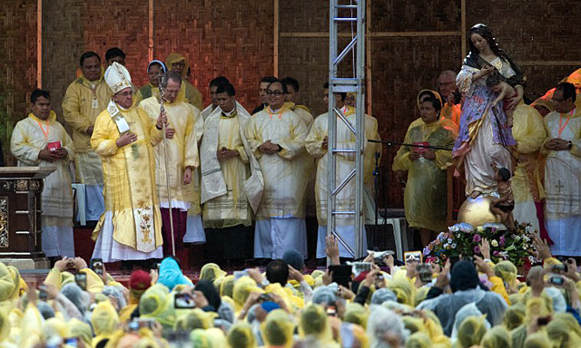 菲律宾司铎表示,“人们从四面八方来到这里敬礼童贞圣母玛利亚”。这是独一无二的艺术作品,因为这尊用台风中被摧毁的主教座堂残骸制成的圣像揭示了“人们所承受的痛苦”,如海燕号台风灾民们的灾难。米里坦特神父继续介绍说,圣道礼仪前,教宗亲自在圣母像前祈祷。