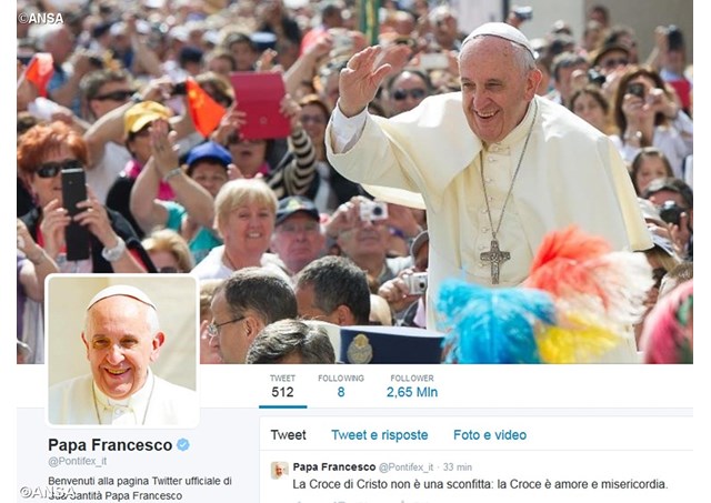 教宗9种语言的推特帐户已有超过2100万名追随者。