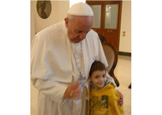 (梵蒂冈电台讯)教宗方济各3月30日下午在梵蒂冈圣玛尔大之家私下接见了罹患罕见疾病的儿童依纳爵?富奇(Ignazio Fucci)及其家人。这名年仅8岁的儿童罹患了全世界只有40例的疾病,他是意大利首位接受母亲的捐赠而进行骨髓移植手术的病童。这个家庭自2014年10月起寄住在意大利运送病患至露德及国际朝圣地全国联合会(Unitalsi)设立在罗马耶稣圣婴医院附近的接待中心。这所免费的接待中心是该联合会「儿童计划」的项目之一,旨在援助远道前来就医的病童家庭;目前意大利6座城市已有9所接待中心。