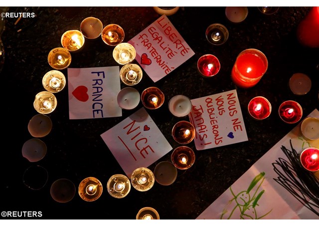 教宗说道:「对於上周四晚间在尼斯造成众多无辜者,甚至是许多儿童丧生的惨案,我们内心仍深感沉痛。我与举丧的每个家庭和整个法国同在。愿天主,慈善的天父悦纳所有遇害者,使他们得享安息,支持伤者、安慰家属;愿天主击溃所有恐怖和死亡的计划,愿不再有人胆敢倾流兄弟的鲜血。我向所有尼斯居民和整个法国献上一个慈祥且友爱的拥抱。」