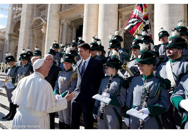 教宗赞许说:“你们真了不起!你们来自不同的国家,我感谢你们宝贵的服务使朝圣者们得以活出这信德的美好经验。在这一年当中,我注意到你们佩戴着禧年徽标在广场上默默服务。我钦佩你们在服务中所表现的奉献精神、耐心和热忱。非常感谢!”