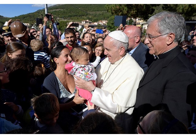 意大利中部列蒂(Rieti)教区主教多梅尼科·彭皮里(Domenico Pompili)告诉本台这件事的缘由说,教宗於去年10月4日探访阿马特里切灾区时,一位母亲把自己的婴儿抱给教宗看,请问教宗是否能亲自为这孩子付洗。教宗接纳了请求,随後决定也为震区所有在那期间出生的婴儿付洗。