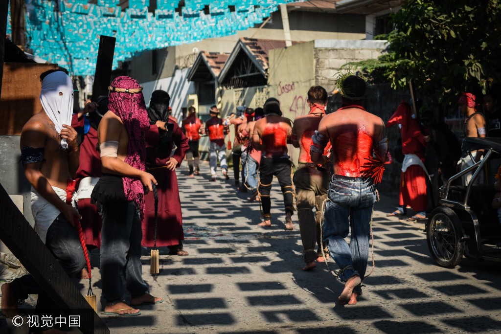 地时间2017年4月13日,菲律宾邦板牙,信徒庆祝濯足节,鞭打后背进行“赎罪”。尽管自虐行为受到天主教的谴责,并不为现代社会接受,但成千上万名菲律宾人仍然视之为虔诚的表现,作为传统保留至今。