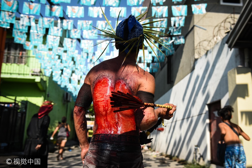 菲律宾信徒庆祝濯足节 鞭打后背“赎罪”