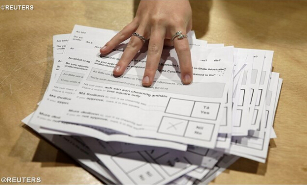 爱尔兰共和国5月25日针对宪法第八条附加条款的废存问题举行公投。该条款严格规定,唯有在妊娠造成孕妇的生命危险时才能堕胎。公投结果显示,66%的选民支持废除这条法律。该国主教团生物伦理委员会主席密切关注这次公投的宣传活动,他特别强调,反对废除这法律的宣传工作并未得到政治界的支持。