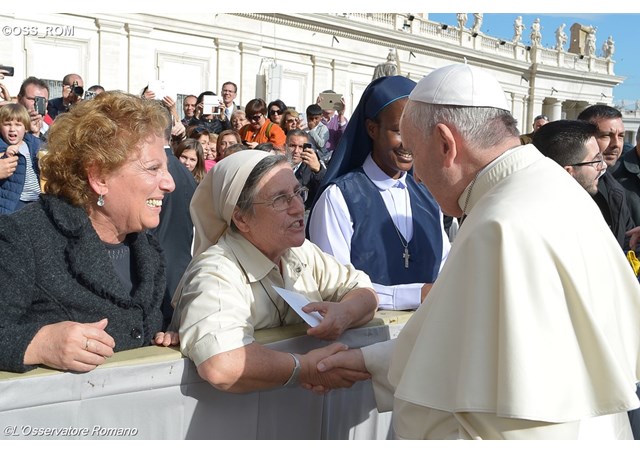 (梵蒂冈电台讯)教宗方济各11月19日在梵蒂冈圣伯多禄广场主持公开接见活动,数以千计的朝圣信友前来会晤教宗。教宗的要理讲授继续以教会为主题,这一天他谈了“教会--普遍成圣的圣召”。教宗强调,成圣是人人都能走的路。无论在任何地方,任何生活处境,只要为爱他人作出微小举动,就能成圣。11月21日将是“圣母奉献日”,教宗要求信友们以祈祷支持隐修院修女们的奉献生活。