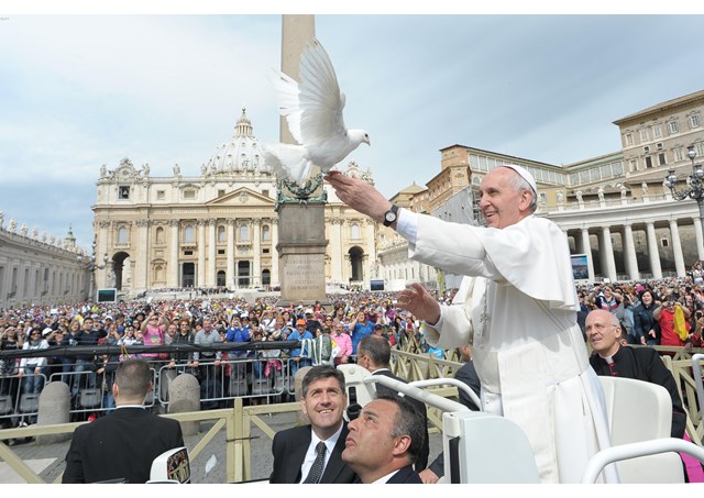 教宗方济各释放和平鸽