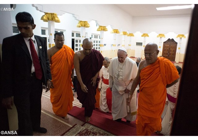(梵蒂冈电台讯)教宗方济各元月14日在斯里兰卡的访问行程主要是在首都科伦坡为若瑟?瓦斯神父举行封圣大典,以及在该国北部的马杜圣母朝圣地为全国修和祈祷。在从马杜返回圣座大使馆的途中,教宗应佛教僧侣之邀,参访了科伦坡的一座佛寺。先教宗若望保禄二世1984年访问泰国时,也曾在曼谷参访一座佛寺。